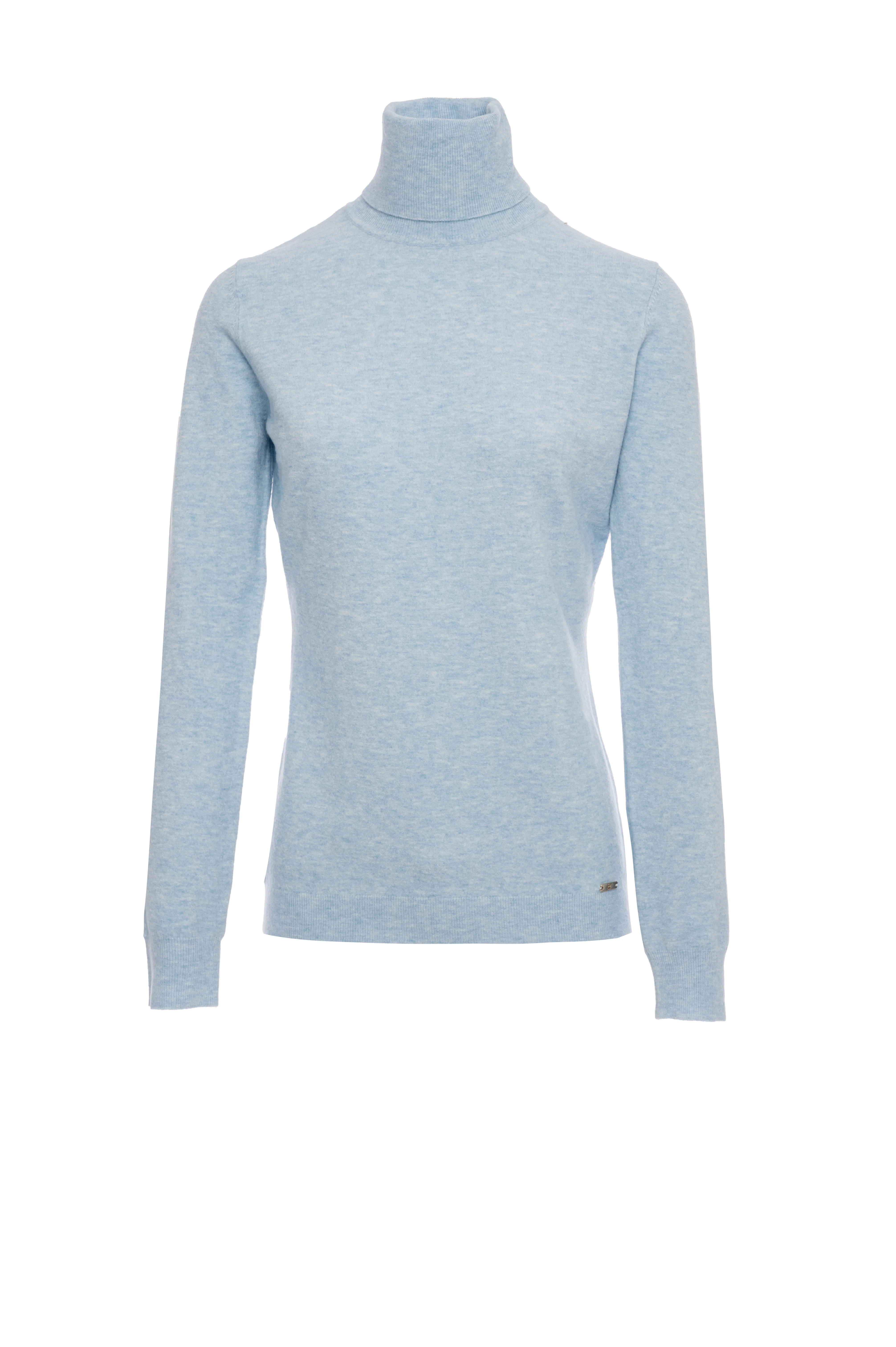 Il design pulito e senza tempo presenta un collo alto che offre calore e un'eleganza discreta. La maglia è caratterizzata da una lavorazione fine che le conferisce un aspetto liscio e morbido al tatto, garantendo una vestibilità aderente ma confortevole che si adatta delicatamente alla silhouette. Le maniche lunghe e l'orlo inferiore sono rifiniti con un bordo a coste, per una maggiore durata e una vestibilità ottimale. Un piccolo dettaglio metallico discreto è applicato sull'orlo inferiore, aggiungendo un tocco di raffinatezza.