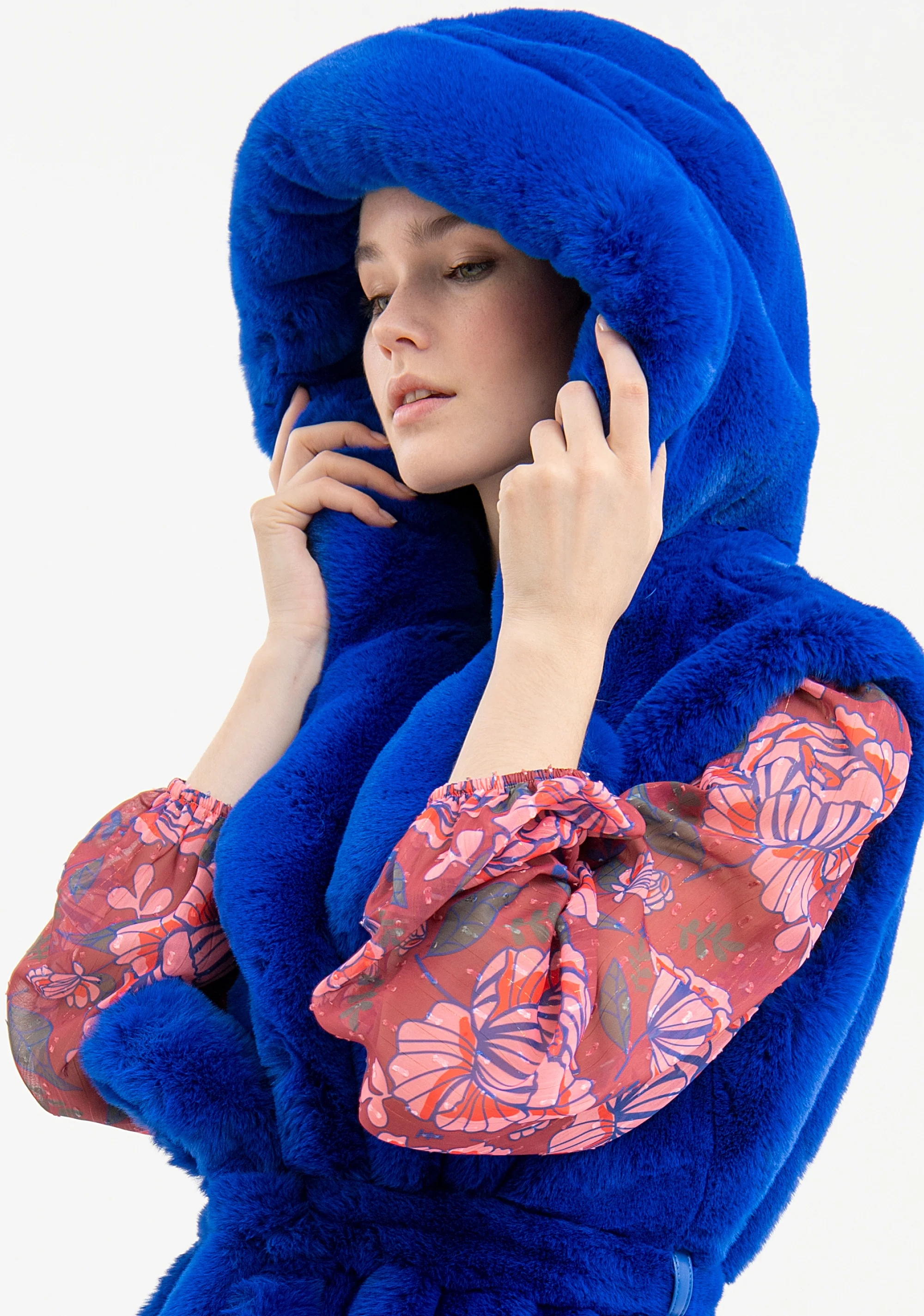 Gilet regular tessuto morbido, con cappuccio, cintura in vita, e con tasche laterali.
